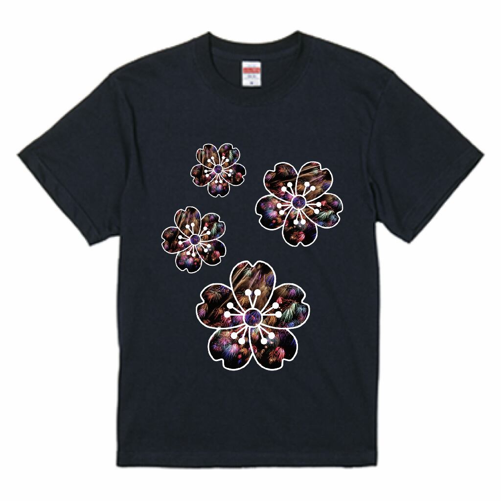 千輪桜 おもしろ 花火 Tシャツ ネイビー