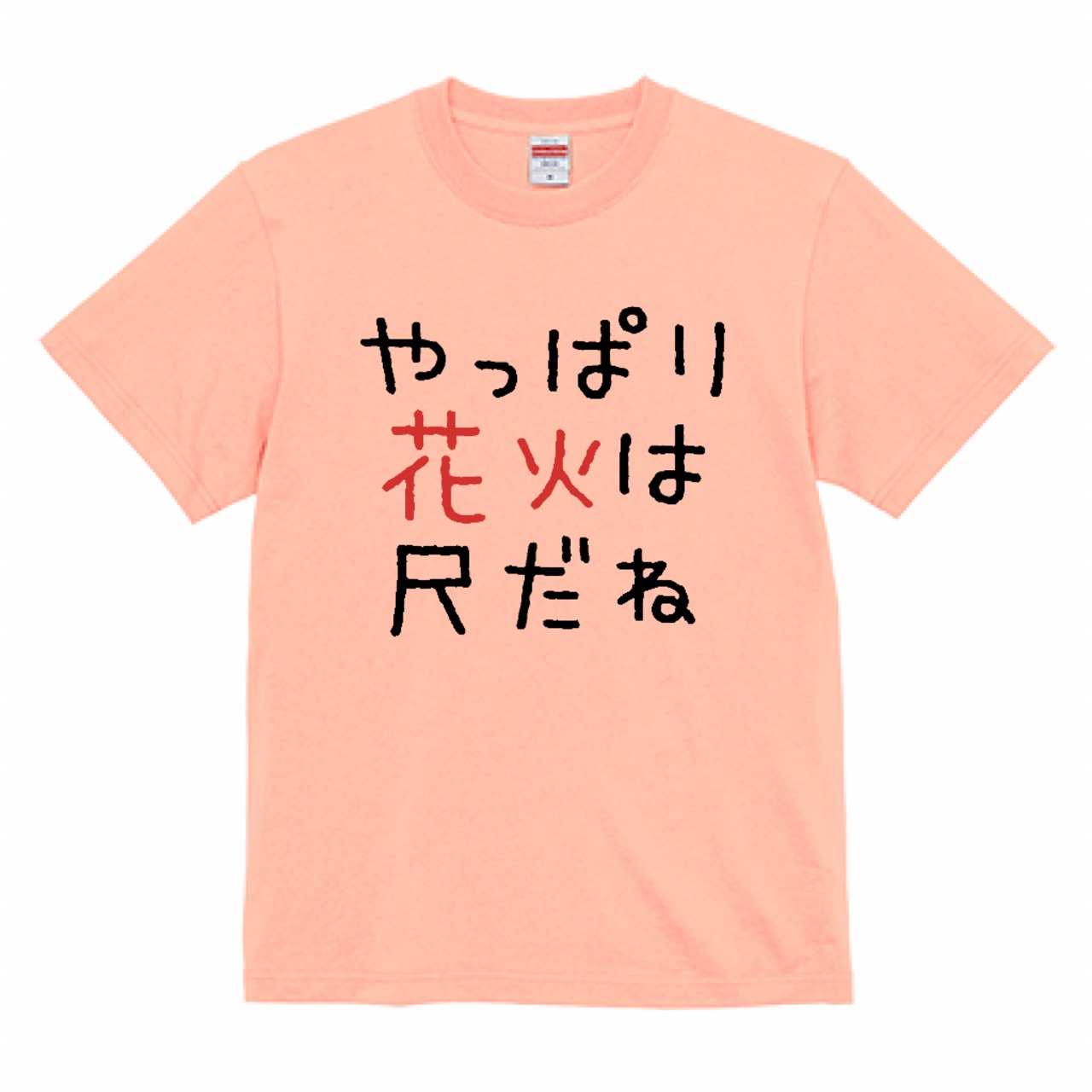 やっぱり花火は尺だね おもしろ 花火 Tシャツ アプリコット